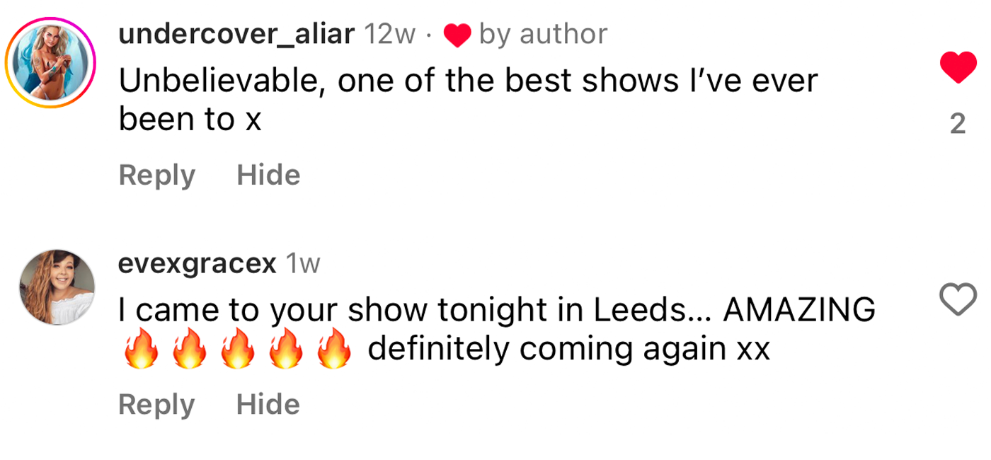 'a fantastic night out. Two hours of fast-paced, polished entertainment from a talented performer with magic in every pore'