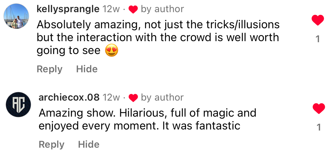 This is an exceptionally special, five star rated, immersive night of magic. You'll never get closer.