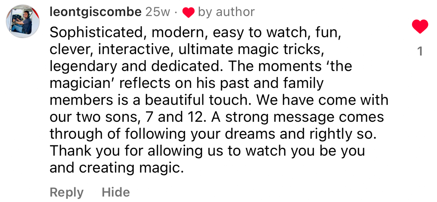 'Captivating. A cross between Joel Dommett and David Blaine'